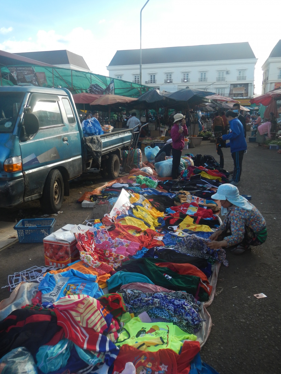 日本から持ってきた目覚まし時計が故障し、アラームが鳴らなくなった。パクセに行けばマーケットがあるので、買えると思い、行ってみた。