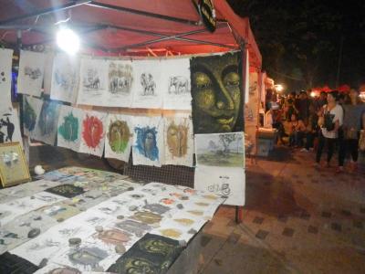 ファーグーム通りとメコン川の堤防との間で毎晩開かれている。売られているものはTシャツや絵など。特に買いたいと思うものはない。暇つぶしに眺めてみるぐらいだ。ファーグーム通りに出れば食べものの屋台はあるが、ナイトマーケットの敷地内にはない。