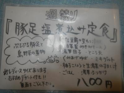注文した料理は「豚足塩煮込み定食」800円。ボリュームがあり、なかなかの味だ。やや豚足の塩気が強い気がしたが。