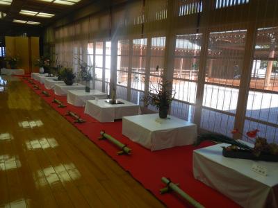 廊下から花田苑の庭園が見える造りになっているのは直接能楽とは関係ないがよいと思う。この日は琴の稽古をする団体が部屋を使っており、琴の音をきくことができたし、華道展も行われていた。「日本文化伝承の館」らしくてよかった。- 旅行時期