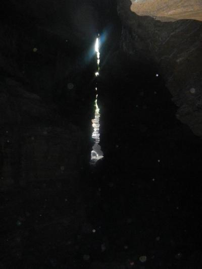 階段を下りて内部に入る。高温多湿だ。一番奥まで行くと割れ目から外が見える。