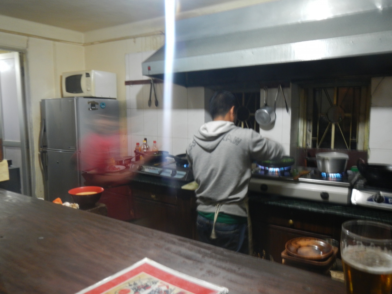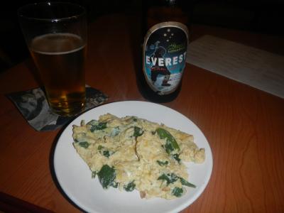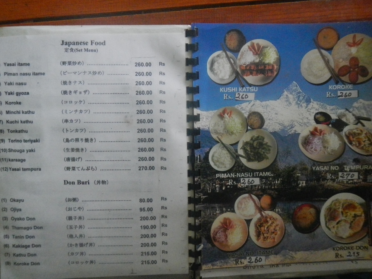 「K」という文字を見ると韓国と関係ありそうな気がするが、ここは日本人が経営する居酒屋だ。ブタ生姜焼き、240ルピー、、ほうれん草とチーズのオムレツ、180ルピー、ビール300ルピーと手頃な値段で楽しめる。食材は地元の物を使っているようだ。