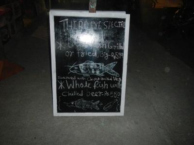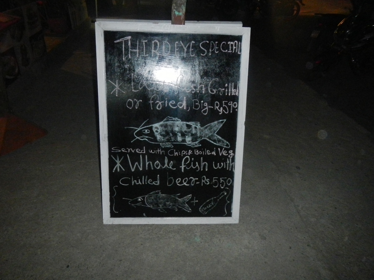 冷たいビールと魚1匹で550ルピー(サービス料10%)という看板に魅かれて入る。