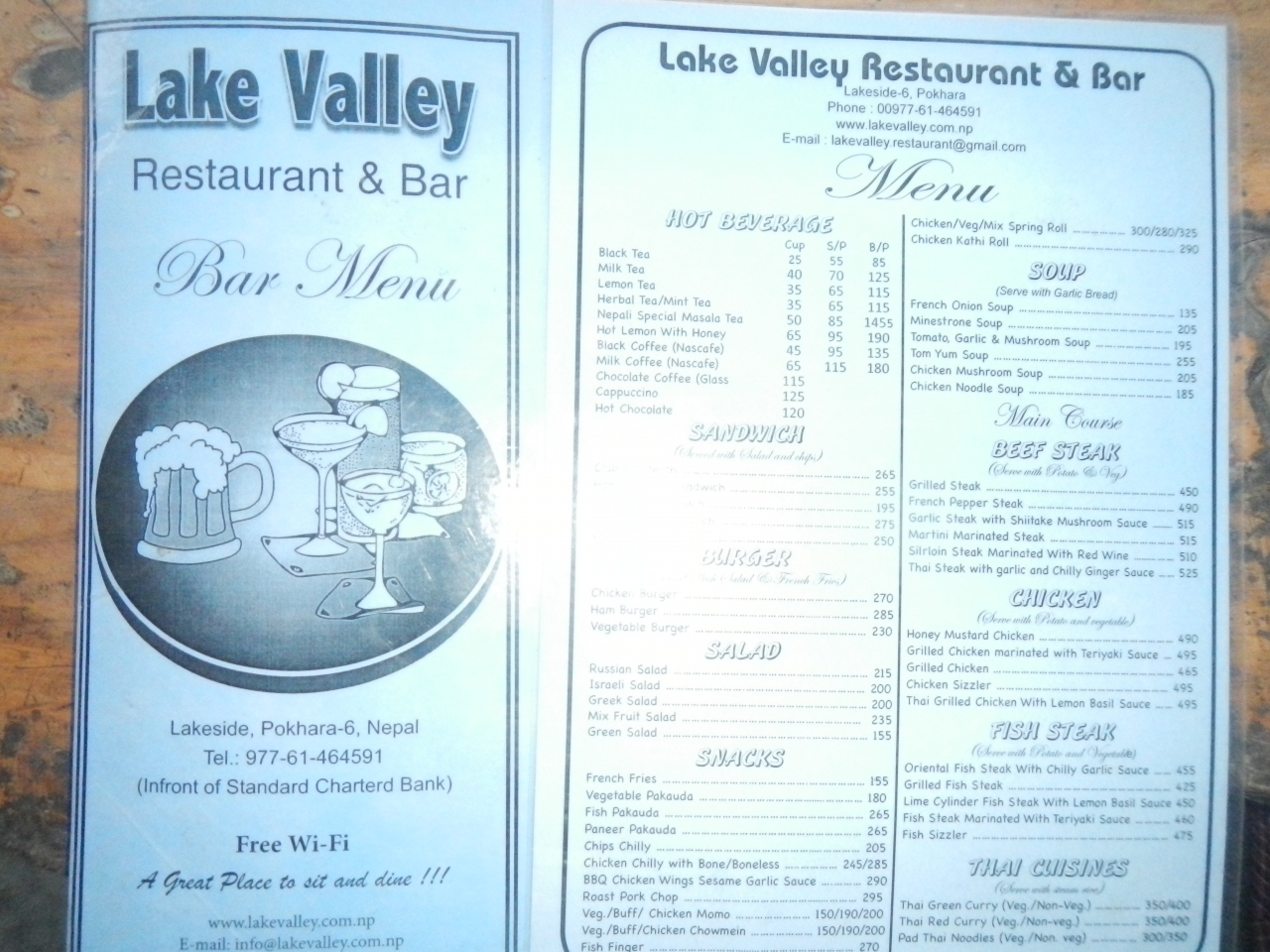 メニューを見るとエベレストビールが210ルピーとネパールで見たレストランのビールの値段の中では一番安かった。- 旅行時期
