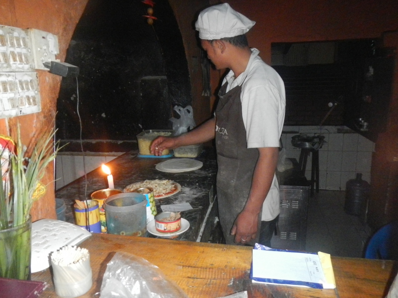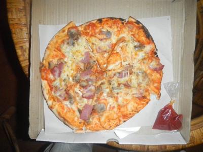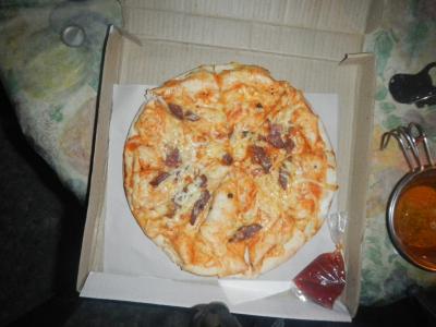 薪の窯でピザを焼く本格的な店。インドで何回かピザを食べたことがあるが、美味しいと思ったことはなかったが、ここは違った。薄めのピザ生地はパリッとしており、チーズはよく溶けていた。1枚200ルピー。トッピング1種。追加のトッピングは1種につき55ルピー。