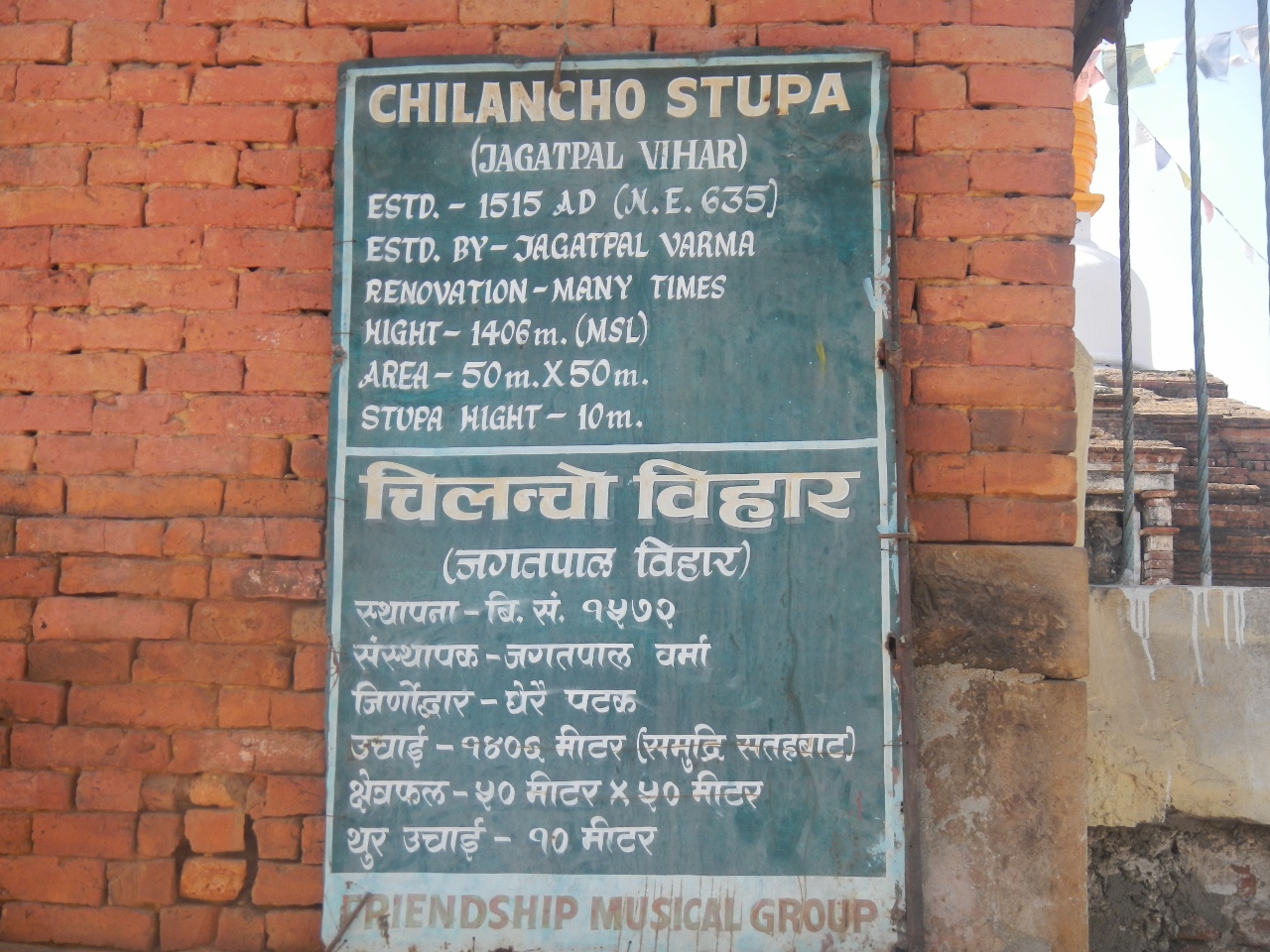 説明板を読みと、1515年に建てられたこと。修復は何度も行われていること。標高1406mあること。50m四方の面積、仏塔の高さは10mであることが分かった。