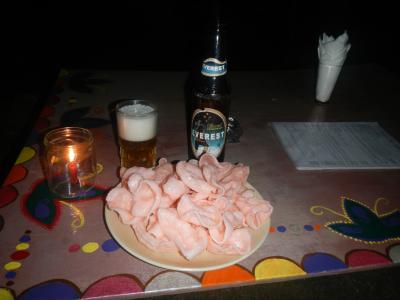 ビールを飲んでいるうちに日が暮れ、おまけに停電。ロウソクの明かりのみ。ネパールではこんなものだろう。驚くほどのことではない。- 旅行時期