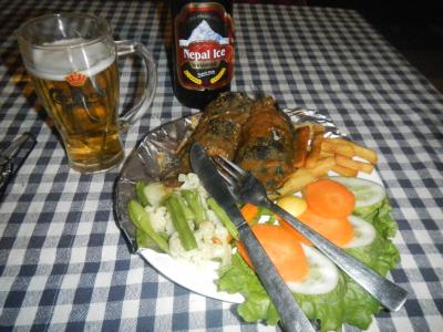水槽で泳いでいる魚はナマズの様だった。それを味噌煮のような形で調理して出してきた。ネパールで味噌味に出会うとは思っていなかったので、意表を突かれた。ネパールで食べた料理ではベスト3に入る美味しさだった。- 旅行時期