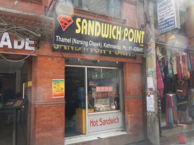 タメルチョーク近くにある24時間営業のサンドイッチ屋。狭い店な中にはサンドイッチの出来上がりを待つ人がいることが多い人気店だ。私は店内で食べずに2回ともテイクアウトした。Lサイズに1食分にはなる。値段はサイズに中身によって異なるが100ルピー~200ルピー程度だ。