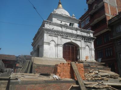 ウママヘシュワール寺院から最初に見たバグバイラヴ寺院の前を通り、坂を下って行くとチランチョビハールに着く。