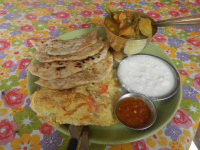 ネパール、インド、ライト、ヘビーと4種類の朝食のメニューがあったが、「インド」を