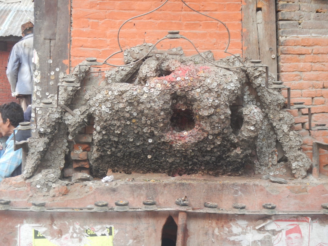 私は「金のなる木」と覚えていた。この時はネパールでは硬貨が使われていないから、こんな風に打ちつけたのかと思った。(後で1ルピーと2ルピー硬貨あることを知る)ここに金を置けば、持ち金が増えるという言い伝えはない。きっと日本ならそうなったような気がする。