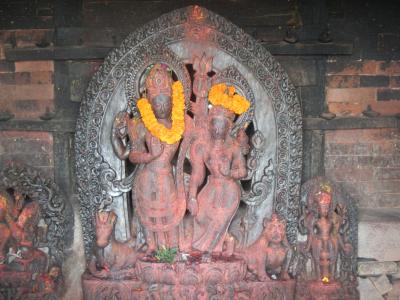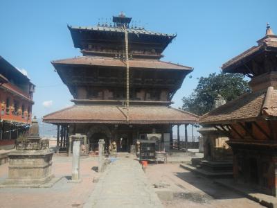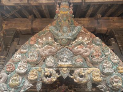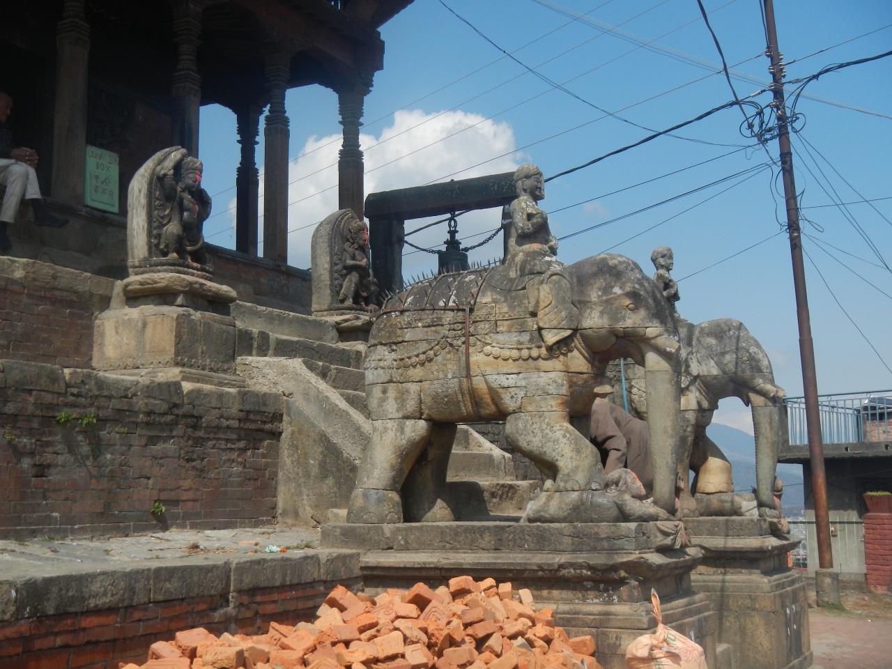 バグバイラヴ寺院から坂を登って行くと、ウマ・マヘシュワール寺院に着く。この寺院は三重の屋根を持つ寺院だ。入り口の2頭の象が鎮座している。象の背中が針状の鞍で覆われているが、ガイドブックには子供達がその背中に乗って遊び、落ちる事故を防ぐためとあるのには違和感がある。