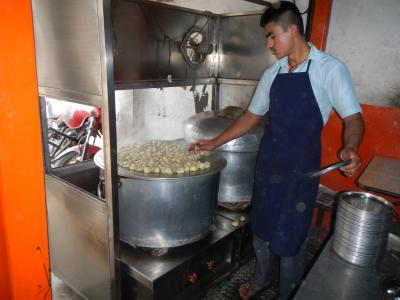 モモの専門店。10個60ルピーと格安にもかかわらず、とても美味しい。店の中ないつも客で一杯だった。(2回ともテイクアウトしビールのつまみにした)