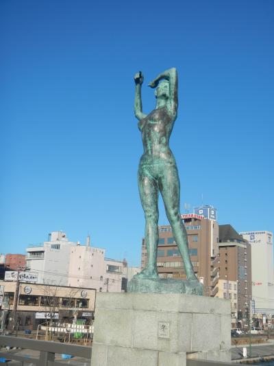 旧釧路川にかかる幣舞橋に設置された「春」「夏」「秋」「冬」を表現した4体の女性像が立っている。