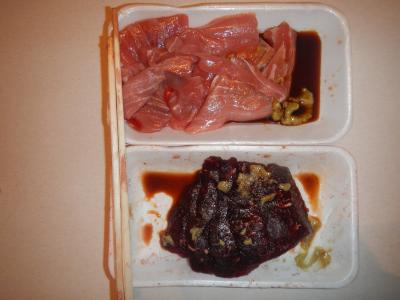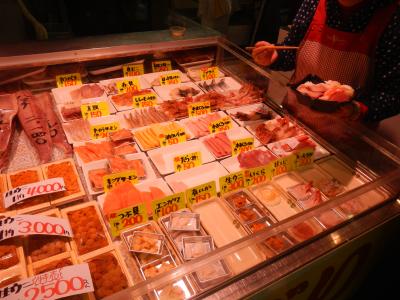 今回はマグロとクジラの刺身がお買い得だったので、それを買って根室のホテルで食べた。- 旅行時期