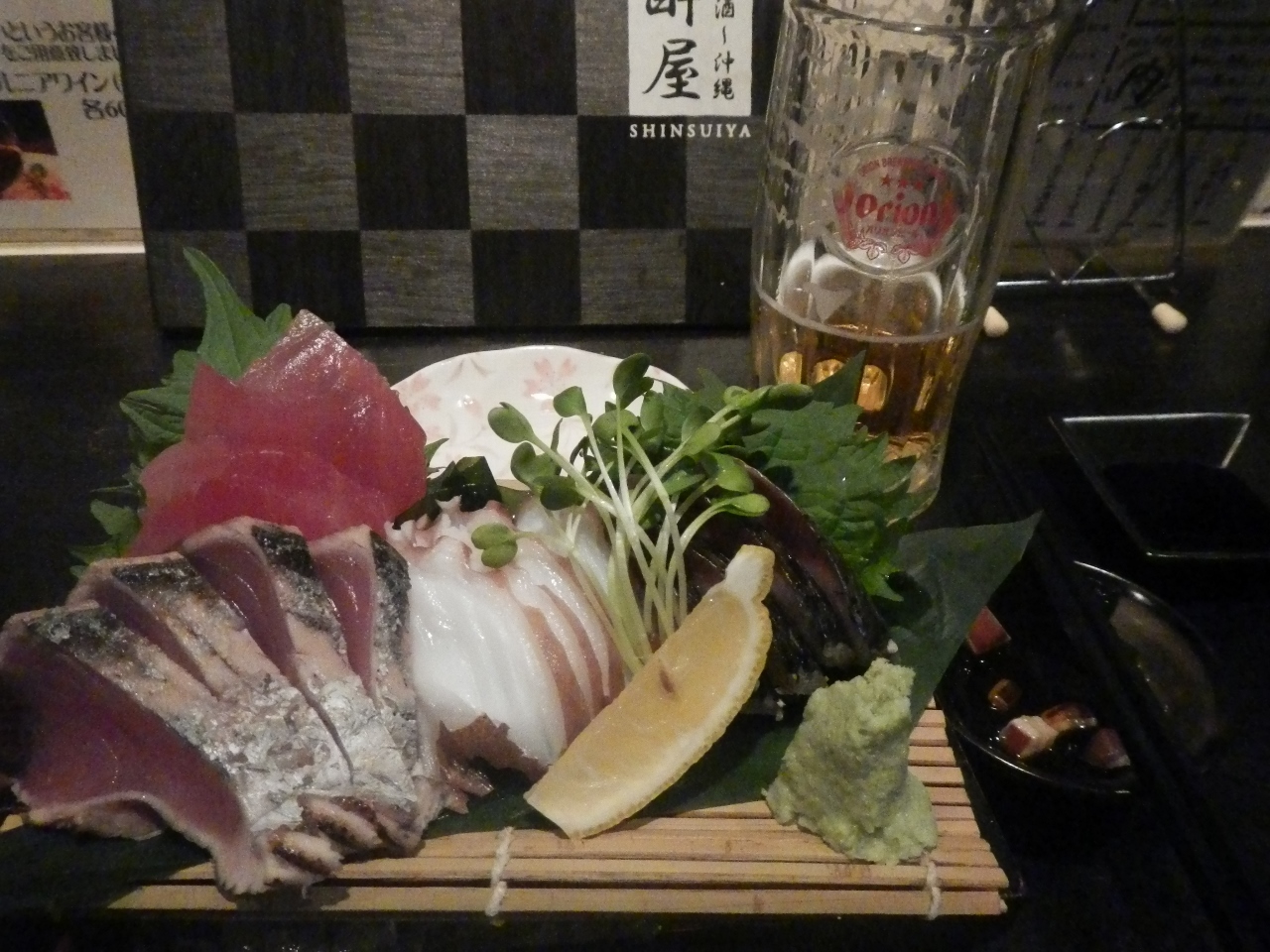 宿のスタッフに「遅い時間だと予約で一杯で入れないことがあるけど魚が美味しい」と紹介されたので行ってみた。「入店から1時間ビール1杯290円」などと書かれていたので、これはもう飲むしかないと思った。