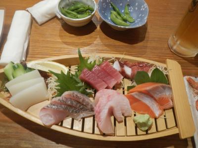刺身の盛り合わせ(980円)と車エビポンしゃぶ(5匹480円)を注文する。刺身は新鮮でおいしく、車エビはもうプリプリで言うことはない。石垣島で養殖されているので、バナメイエビではないと思う。- 旅行時期