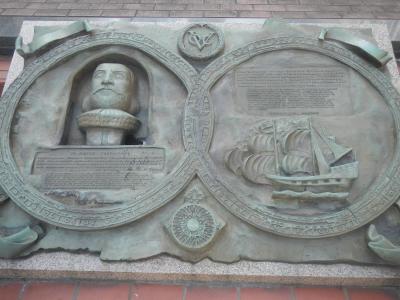 記念像はヤンヨーステンの顔の彫刻と乗っていたリーフデ号の彫刻である。- 旅行時期