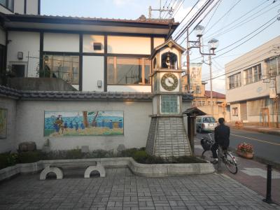 日光御成道の鳩ヶ谷宿の公園の一角にある時計。文字盤には数字ではなく、子、丑、寅・・と十二支が書かれている。月曜日から土曜日は午前10時、正午、午後3時、5時、日曜日には午前10時から午後8時まで毎時、お坊さんの人形が鐘を突く演出がくり広げられる。