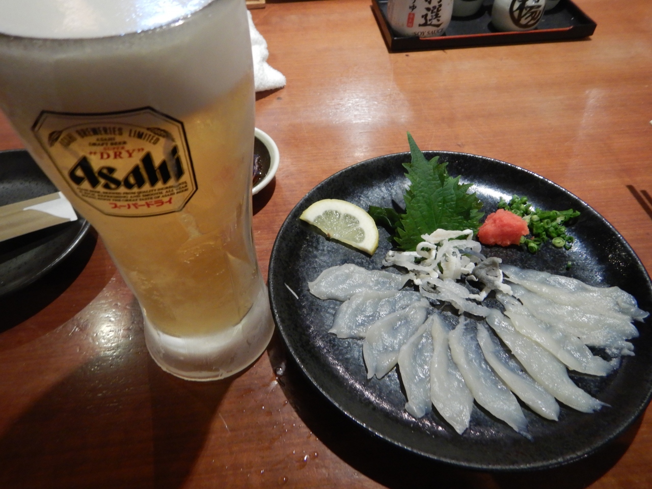 ふぐなんてめったに食べないが、メニュー「とらふぐ刺し」があったのでまず注文する。サーモンと紅鮭のルイベ、これも好物なので注文した。〆にカニたっぷり餡かけチャーハンを食べる。ビールは1杯199円と安かったので飲み放題にはしなかったが、体調不良のため3杯しか飲まなかった。