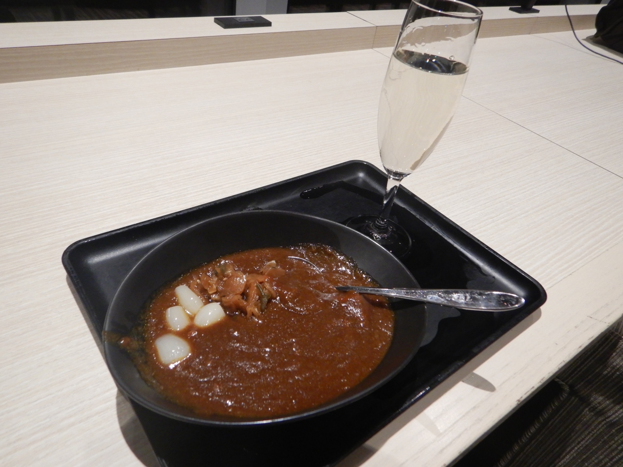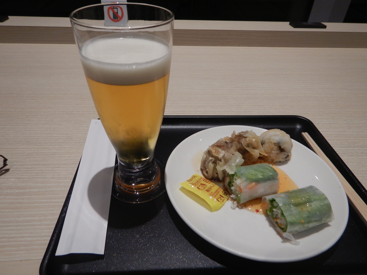 いつもと同じ深夜羽田発のバンコク行きに搭乗するために羽田空港に来た。JAL33便に機内食が配られるのはバンコク到着2時間前だ。だからそれまで空腹にならないようにある程度ラウンジで腹ごしらえをした。やはり生ビールはおいしいし、ビーフカレーは外せない。手毬寿司やシュウマイなども食べながら搭乗時刻を待った。
