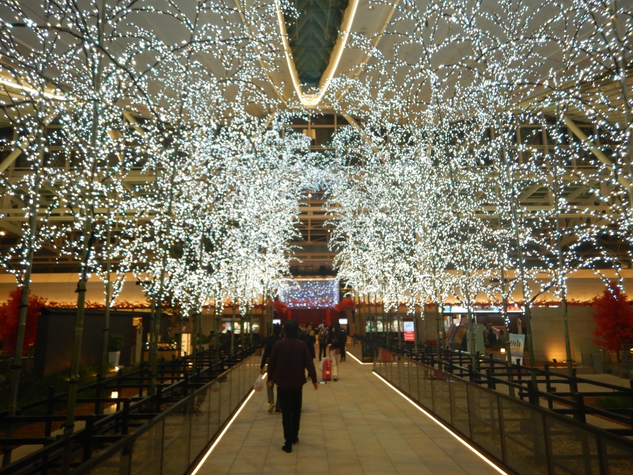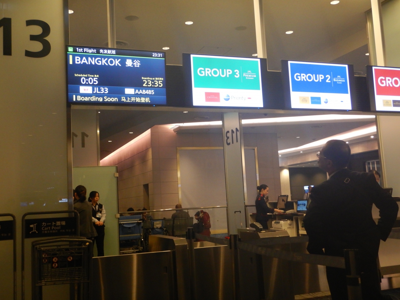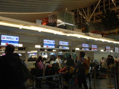 京急の国際線ターミナル駅で下車。出発ロビーへと上がる。チェックインカウンターでプレミアムエコノミーにアップグレードされていることを知らされる。これは幸先がいいと思った。4階の広小路、江戸舞台を見て、サクララウンジの寄り、搭乗時刻間近まで過ごした。