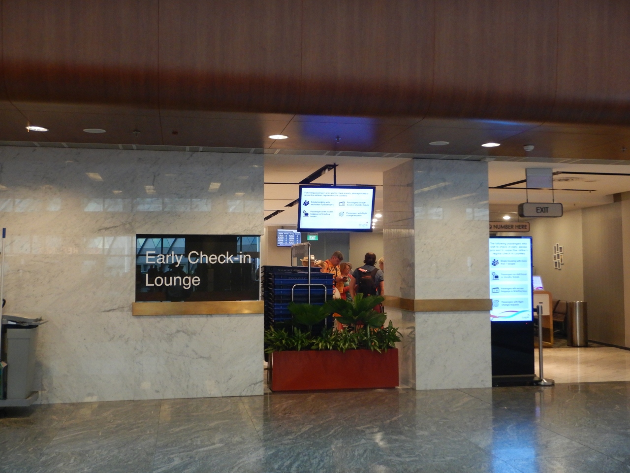 JALの場合、第1ターミナル内2階 Early Check-in LoungeまたはJewel内1階 Early Check-in Loungeでできる。受付時間は 06:00~23:59(この中で出発12時間前から3時間前まで)出発3時間以内になったら航空会社のカウンターでチェックインする。機内持ち込み荷物だけを持って、Jewelを見たり、早めに出国手続きをして、ラウンジでのんびりするのもよい。