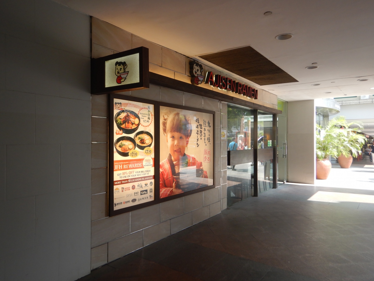 ブギスジャンクションに行く前に、ブギスプラスでらーめんチャンピオンの前を通り、看板を眺めたらラーメンを食べてくなった。この時は日本よりも高いなと思い、食べなかった。ブギスジャンクション内に味千ラーメン店があるのに気づき、メニューを見ると手ごろ価格なので食べることにした。選んだメニュー名は「阿蘇」。7.9S$だが、税とサービス料は別で計9.3S$だった。まずまずの味の豚骨スープ。日本のラーメンの味だった。(味千ラーメンは熊本のラーメンチェーン。日本国内よりも海外の方が店舗が多い。)