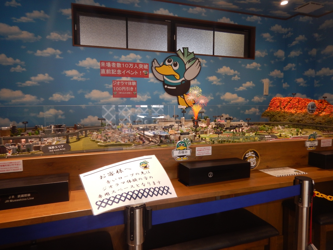 越谷ブランドの様々は商品を扱っている。蔵屋敷売れ筋ランキングというのが貼ってあったが、一番人気はガーヤちゃん煎餅だ。煎餅というと隣の草加が有名だが、越谷でも手焼きの煎餅の店はいくつかある。ここで煎餅の手焼きを体験できる。個人的にはくわいクッキーなんか越谷らしいと思う。越谷市のジオラマがあり、電車を運転できるようだ。