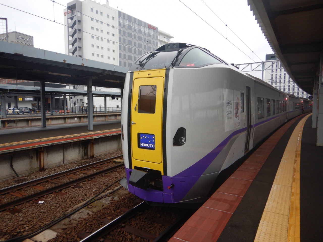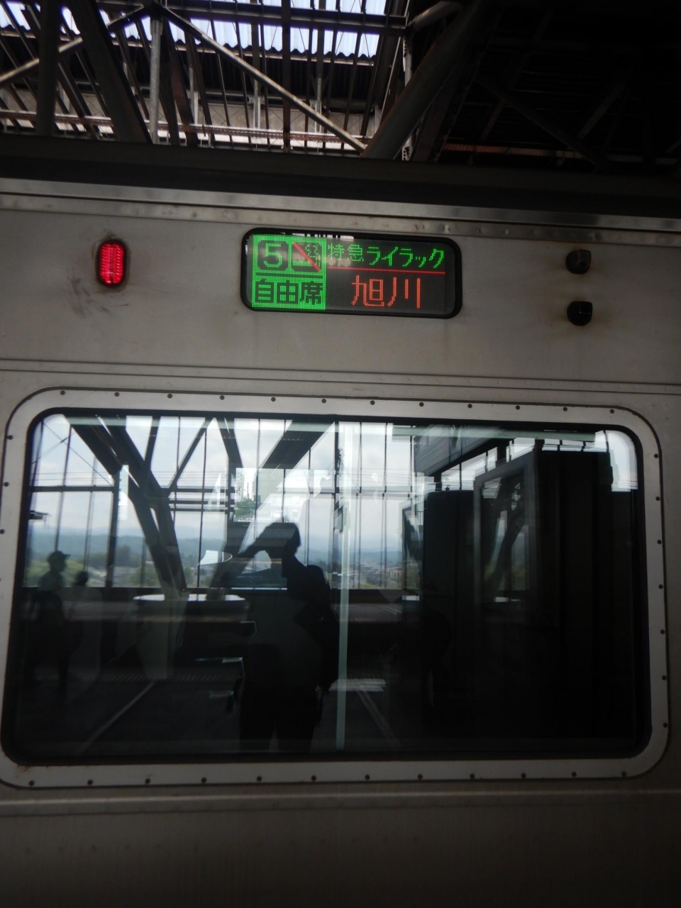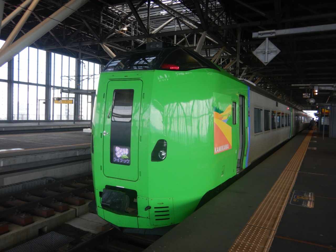 札幌~旭川は札幌発12時00分、旭川着13時25分のライラック15号。翌日は旭川発17時00分発、札幌着18時25分のライラック35号に乗車した。普通列車の乗り継ぎだと3時間以上かかるし、本数が少ない。特急に追加料金なしで乗れるチケットを持っている場合は使うに限る。- 旅行時期