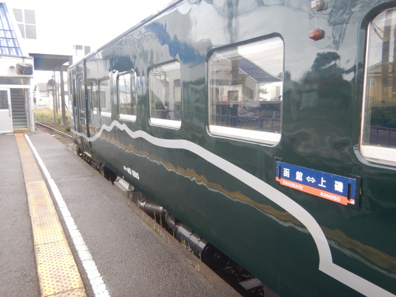七重浜10時03分発の函館行きに乗車するつもりだった。しかし、同じ時刻に上磯行きの列車が発車するに気が付かなかった。ホームの函館行き乗り場と書いてあったところから乗車したはずだが、これがなんと上磯行きだった。上磯までは12分ほど、上磯で40分ほど待って、乗ってきた列車で函館に着くことができた。
