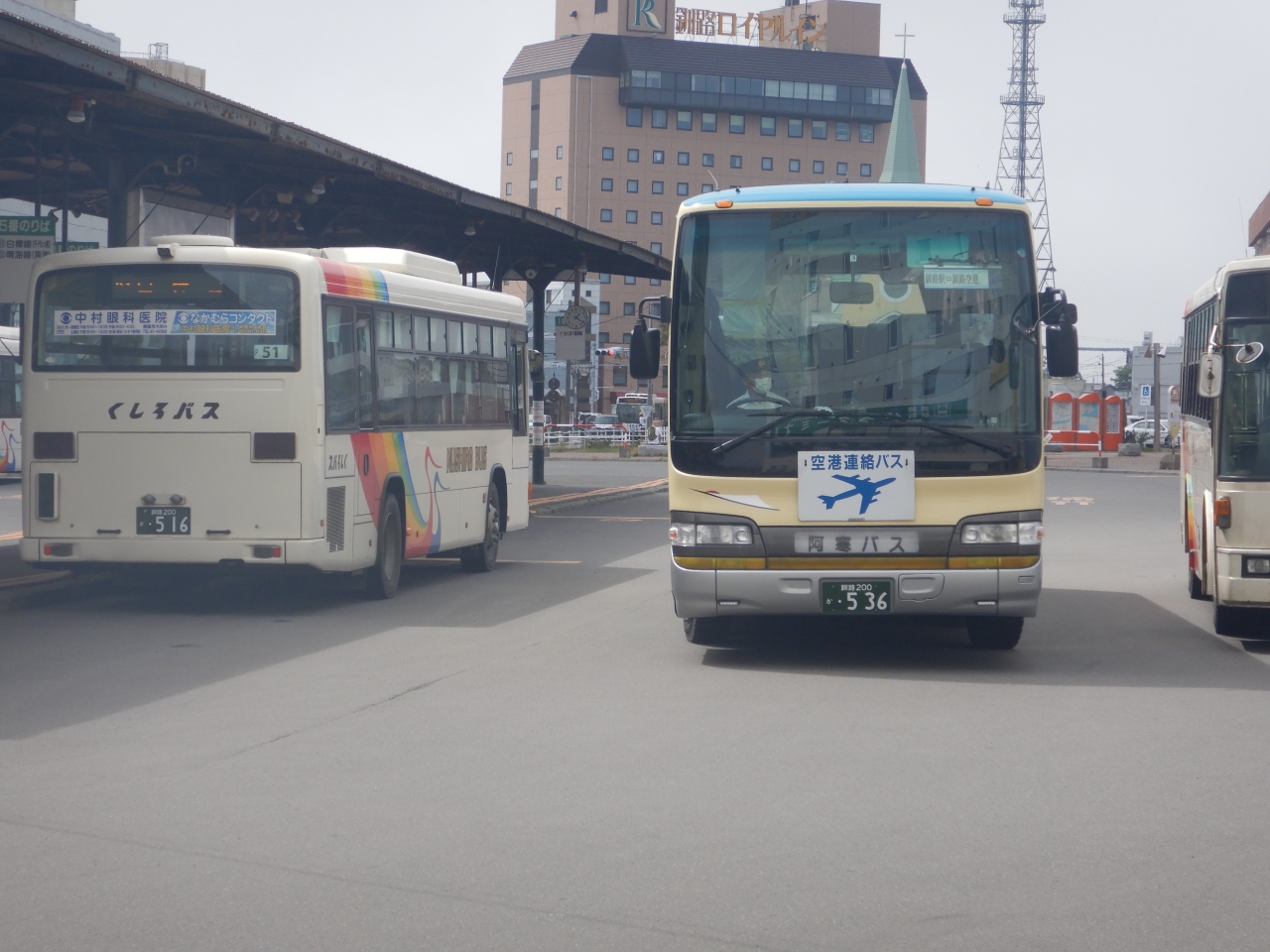 釧路駅前のホテルの1階がバスバスターミナルになっている。バスターミナル内で空港行きのチケットを買う。チケットの自販機もあるが、窓口で買えばクレジットカードが使えるので窓口で買った。バス代は940円。地方のバスが割高なのは仕方がないとあきらめるしかないかな。
