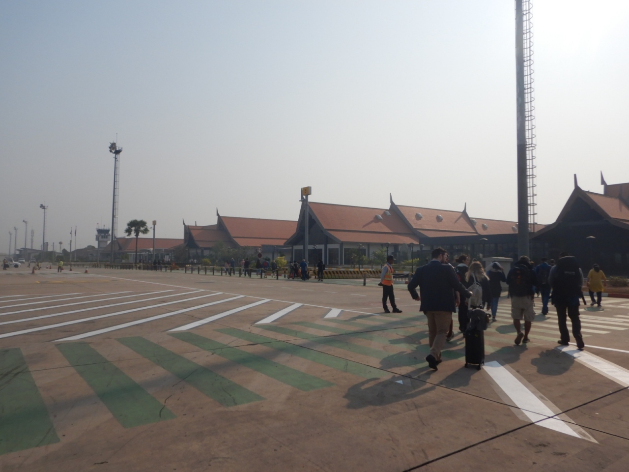 空港に到着するとタラップを降り、歩いてターミナルに向かった。多くの空港ではバスで移動するのになかなか経験できないことだ。- 旅行時期