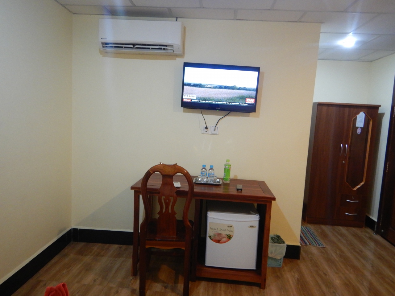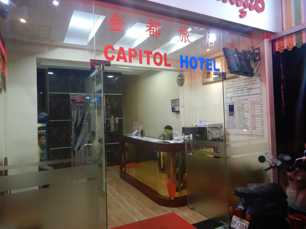 1泊目はツインルームのシングルユースで15$。前回泊まった時と異なったのはルームキーがカードキーになっていたこととテレビが液晶テレビになっていたこと(シングルルームのテレビはブラウン管もまま)2日後に泊まったシングルルームは14$。ツインルームの方が広いので気に入っているが、この日はシングルルームに空きがあったので、ツインルームのデスカウントには応じてもらえず、シングルルームに泊まった。