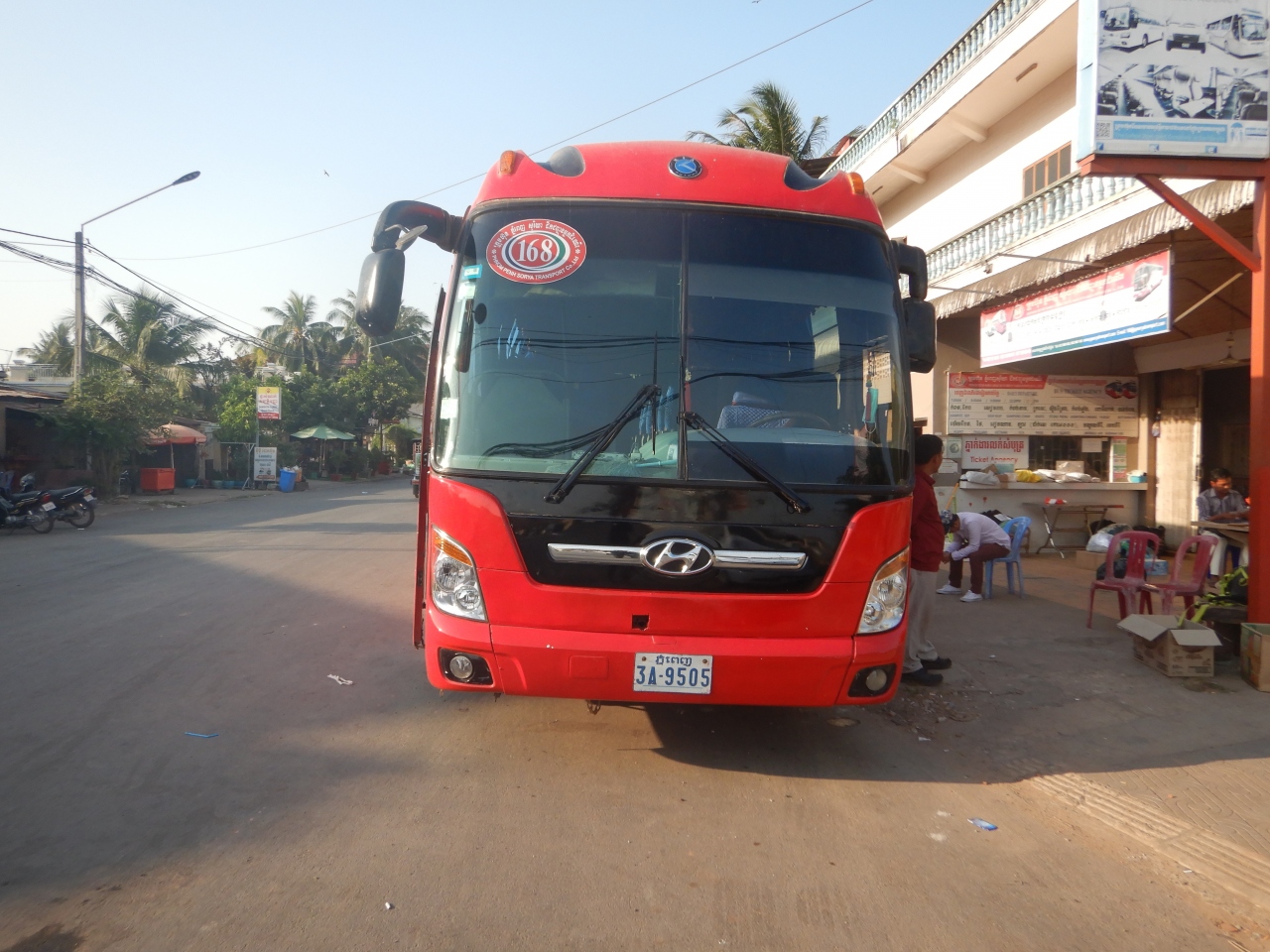 カンポット発8時のバスチケットを直前で買うことができた。料金は5.5$だった。行きのプノンペン発の料金が7.5$だったので2$安い。どうして料金が異なるのかよくわからない。バスは10分遅れて発車し、6時間以上かかってプノンペンに到着した。