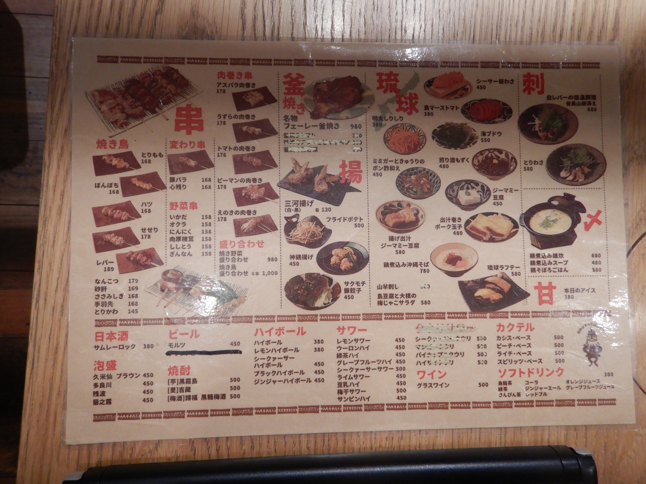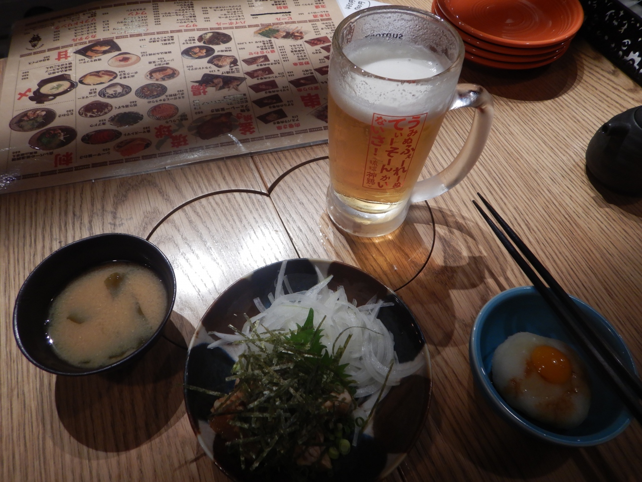 「仲間うちで騒いでいるだけ」という口コミはあながち外れていない。前回利用時には飲み放題にビールが入っていたが、ビールは1杯に制限されていた。メニューも減っていた。お通しがなくて良心的だと思ったらテーブルチャージとして330円計上されていた。このテーブルチャージはメニューに書いてなかったと思う。書いてあったとしたら見落としていた。何も出さずに330円撮られるくらいならお通しの方がましだ。生ビール中3杯550×3、珍味3種盛980×1,1。計3028円だった。