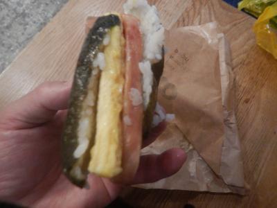 空港に着いたらすぐに店に行ってみた。いつもなら行列ができているのに店内はお客さんが1人いるだけ。待たずに注文できた。今回はあまり食べるつもりがなかったのでポークたまごを1個だけ買った。280円。クレジットカードで払おうとしたらカードリーダー故障しており使えなかった。