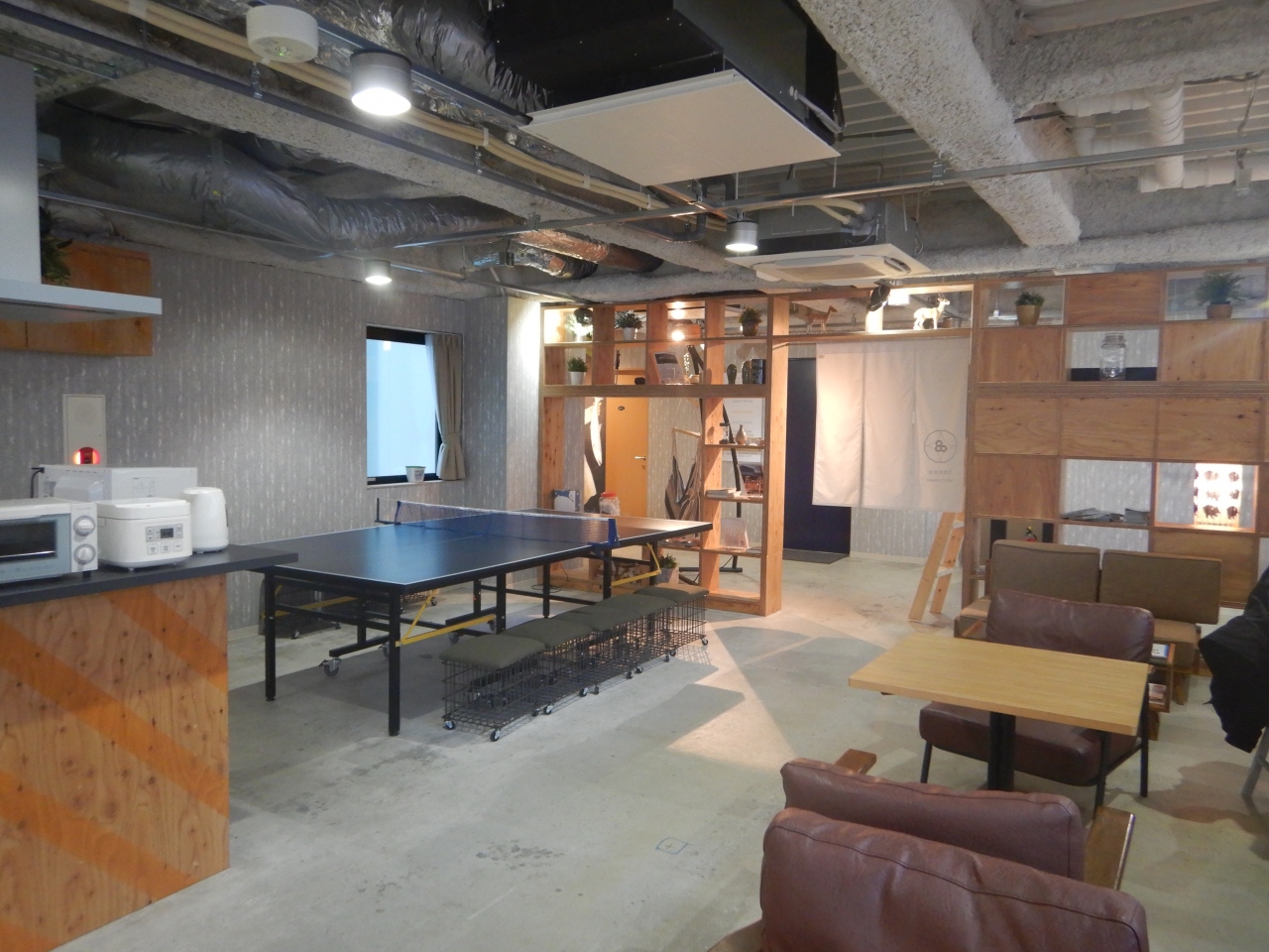 2階のゲストラウンジ&共用キッチンは広く、使いやすい。ただ、宿泊客の雰囲気は旅人同士交流するといった感じは薄い。- 旅行時期