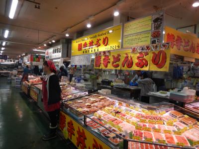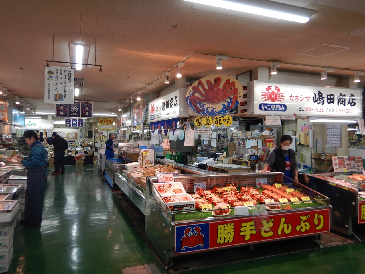 前日にも寄ってみたが、釧路到着が遅かったため、閉店後だった。この日は釧網線の8時57分発の列車の乗るので、乗車前に余裕で寄ることができた。何度かカニを買ったことがある嶋田商店でカニを見るが高いのであきらめた。今回買ったのは500円ほどの出汁昆布のみだ。