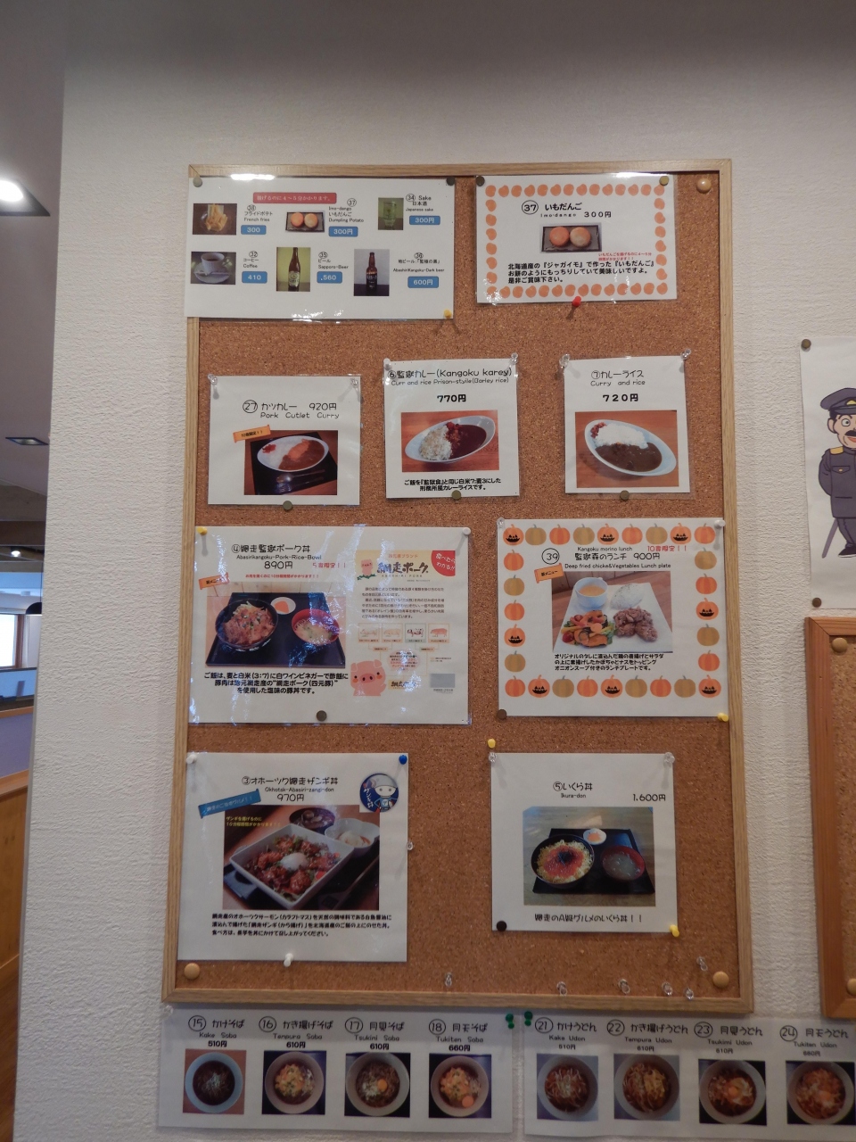 現在の網走刑務所の受刑者が食べているメニューを再現したものが食べられるというので食べてみた。メニューが貼ってあった。監獄食はA(さんま定食)、B(ほっけ定食)があった。Aのさんま定食。720円。(今800円に値上げしたようだ)