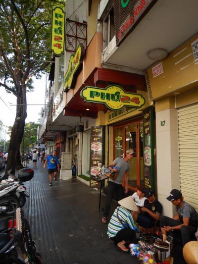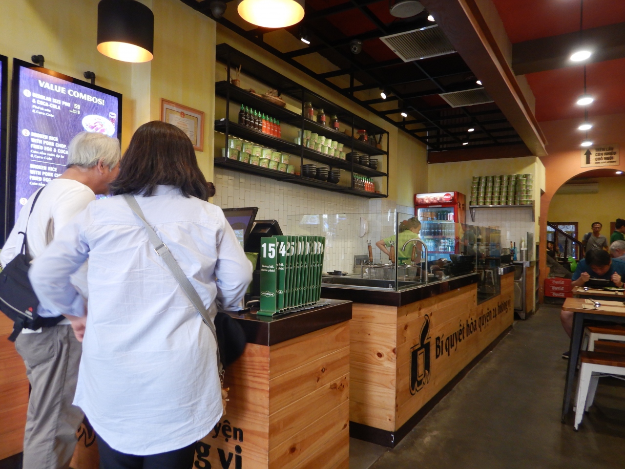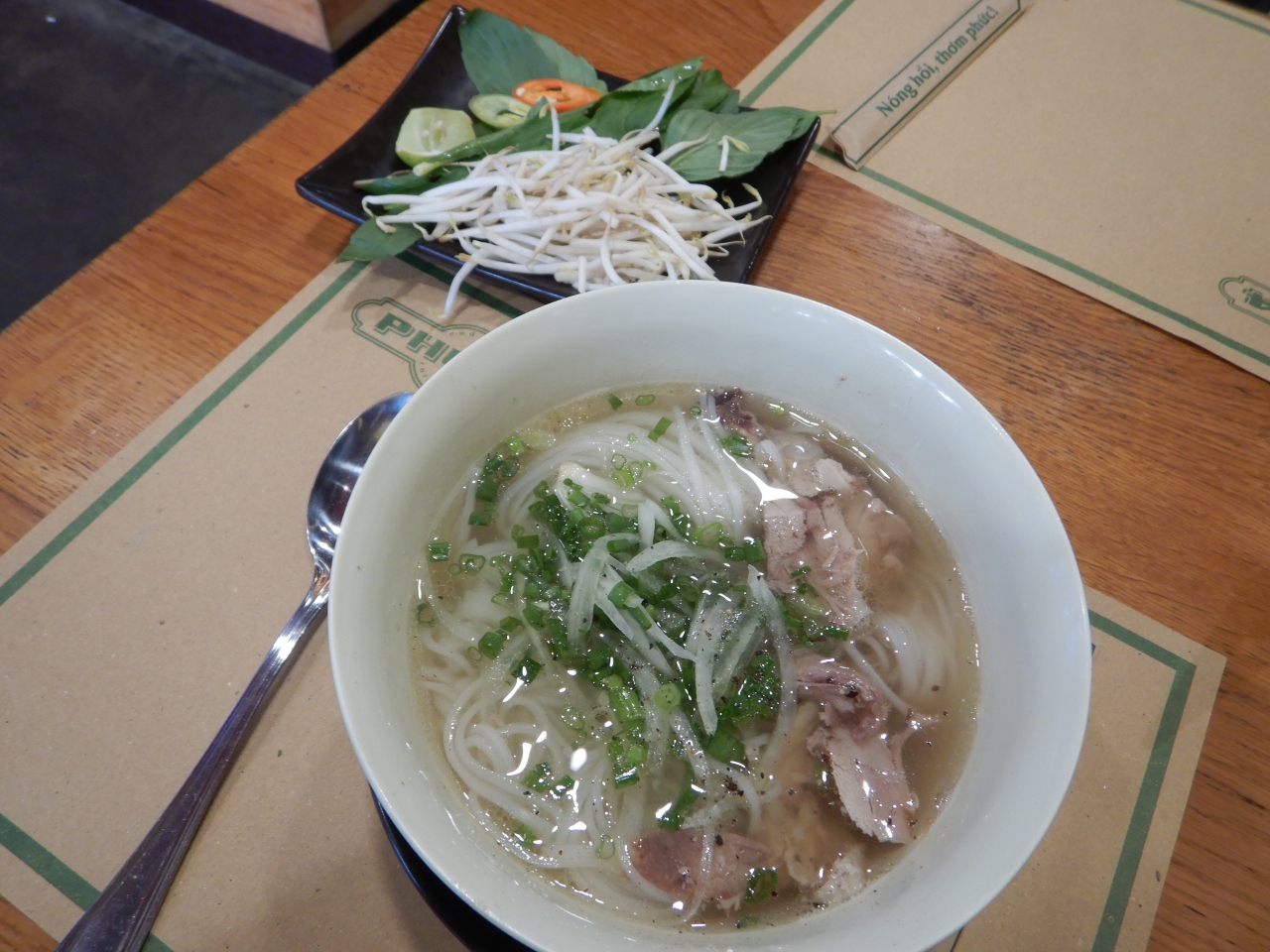 鶏肉のフォー。牛肉のフォーよりもあっさりしているので、こちらを食べることが多い。付け合わせのもやしを入れ、ライムを搾って入れる。この店ではコーラなどのドリンクとのセットメニューだあるが、ドリンク抜きでフォーだけを食べた。値段は4万9千ドンだった。