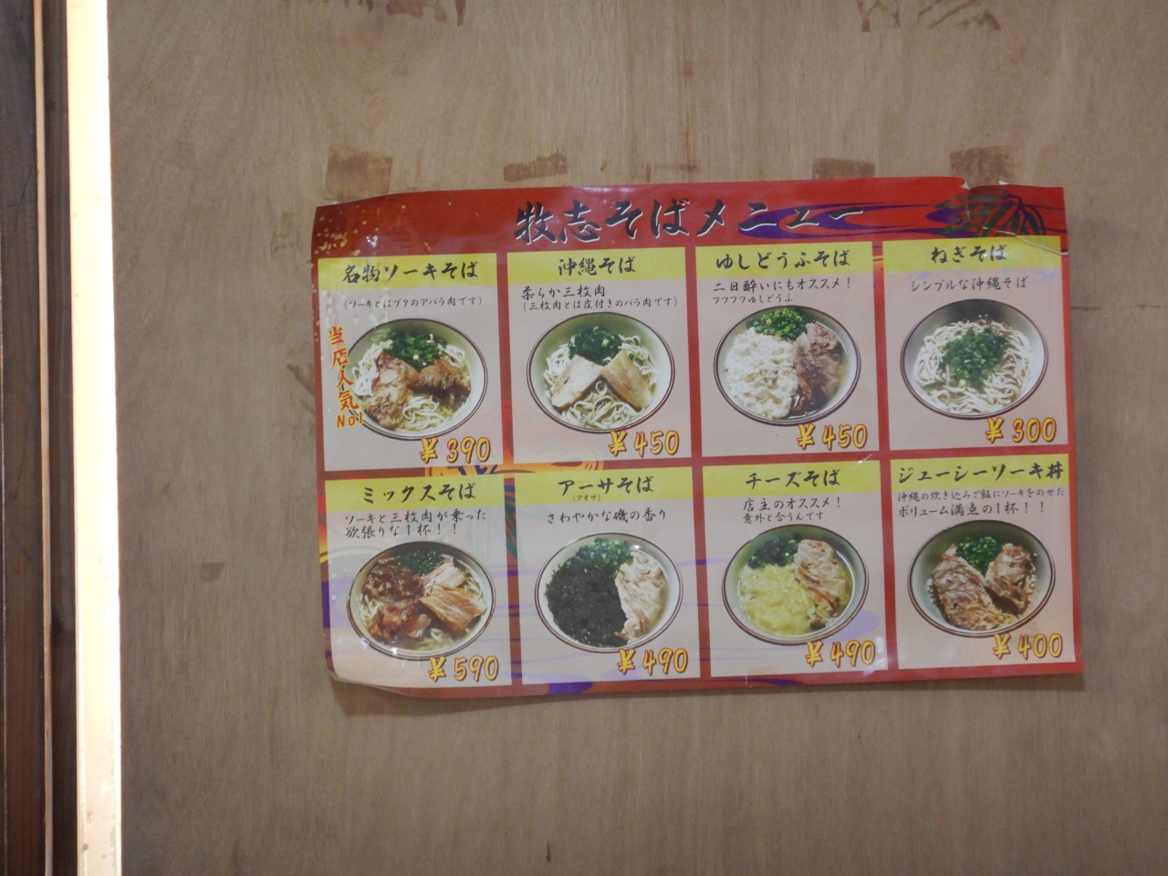 「田舎北店」から「牧志そば」に名前が変わってから大分立った。味の方はどうなんだろう。「南店」の方がおいしい気がするが。券売機で食券を買うのが味気ないのであまり好きではないから評価が辛くなるのかもしれない。ソーキそばの値段は390円と変わりがなかった。