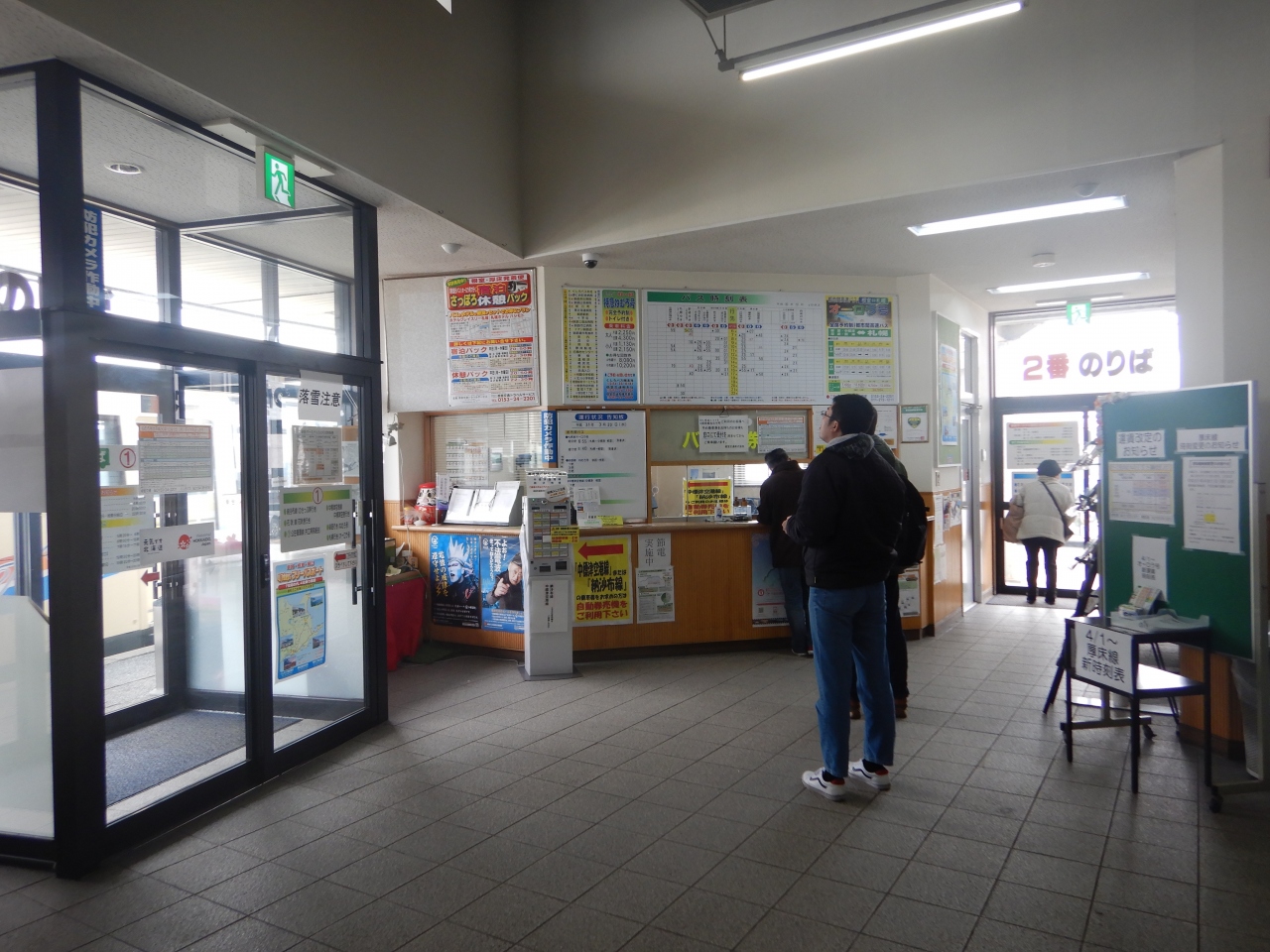根室駅を出てすぐ左にバスターミナルの建物がある。根室市内の路線バスや納沙布岬行きのバスが発着している。バスターミナルは観光案内所を兼ねており、市内の地図や路線バスの時刻表をもらったりした。また土産物屋も営業しているので、土産を買うことができる。