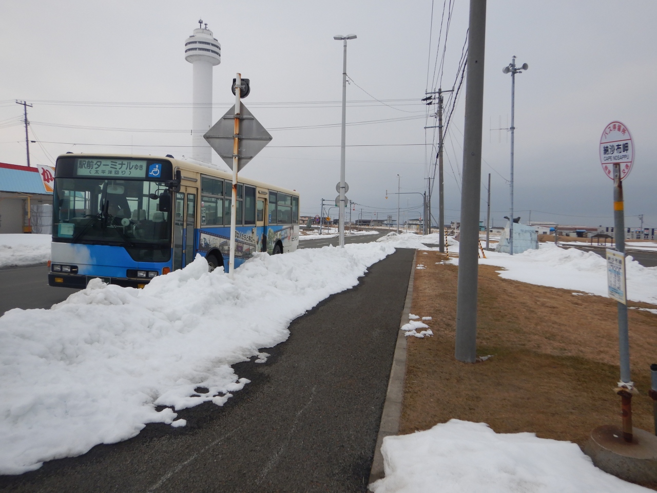 13時35分発の納沙布行きのバスに乗車。納沙布岬着14時20分。帰りのバスは15時10分。50分ほどの滞在だ。バス代は往復割引きでで1930円。バスの発着時刻はJRの列車との接続を考慮して設定されているので、長時間待つことはない。ただ通学用の朝の便を除くと1日4往復しかない。レンタカーの利用が現実的だろう。