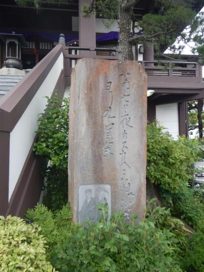 国道4号線と旧日光街道が分岐するところにある寺院。特に何も下調べをせずに立ちよった。境内は狭く、本堂はコンクリート造り。特に見るべきものはないと思ったが、松尾芭蕉が「奥の細道」の旅で、粕壁宿に宿泊したという記念碑があった。曽良の随行日記の一節を刻まれているものだ。芭蕉がこの寺院に宿泊したという確たる証拠はないようだ。