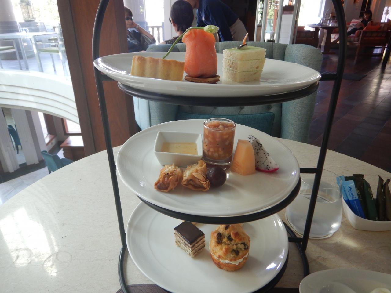 国道6号線を歩いていたら「アフタヌーンティー10$」と書いてあるのが目に付いた。その日は利用しなかったが、後日利用してみた。2階のオリエンタルロングバーがアフタヌーンティーの会場だった。3段重ねのケーキやサンドイッチなど。10$なら安い。ドリンクは紅茶とコーヒーの中からコーヒーを選ぶ。ほどよい苦みがあり、おいしかった。コーヒーのお替りを頼もうとしたら有料で、しかも4$だったので止めた。1階のロビーはエアコンが効いていたが、ここはエアコンの効きが悪かったが、Wi-Fiが使えるので長居をしてしまった。