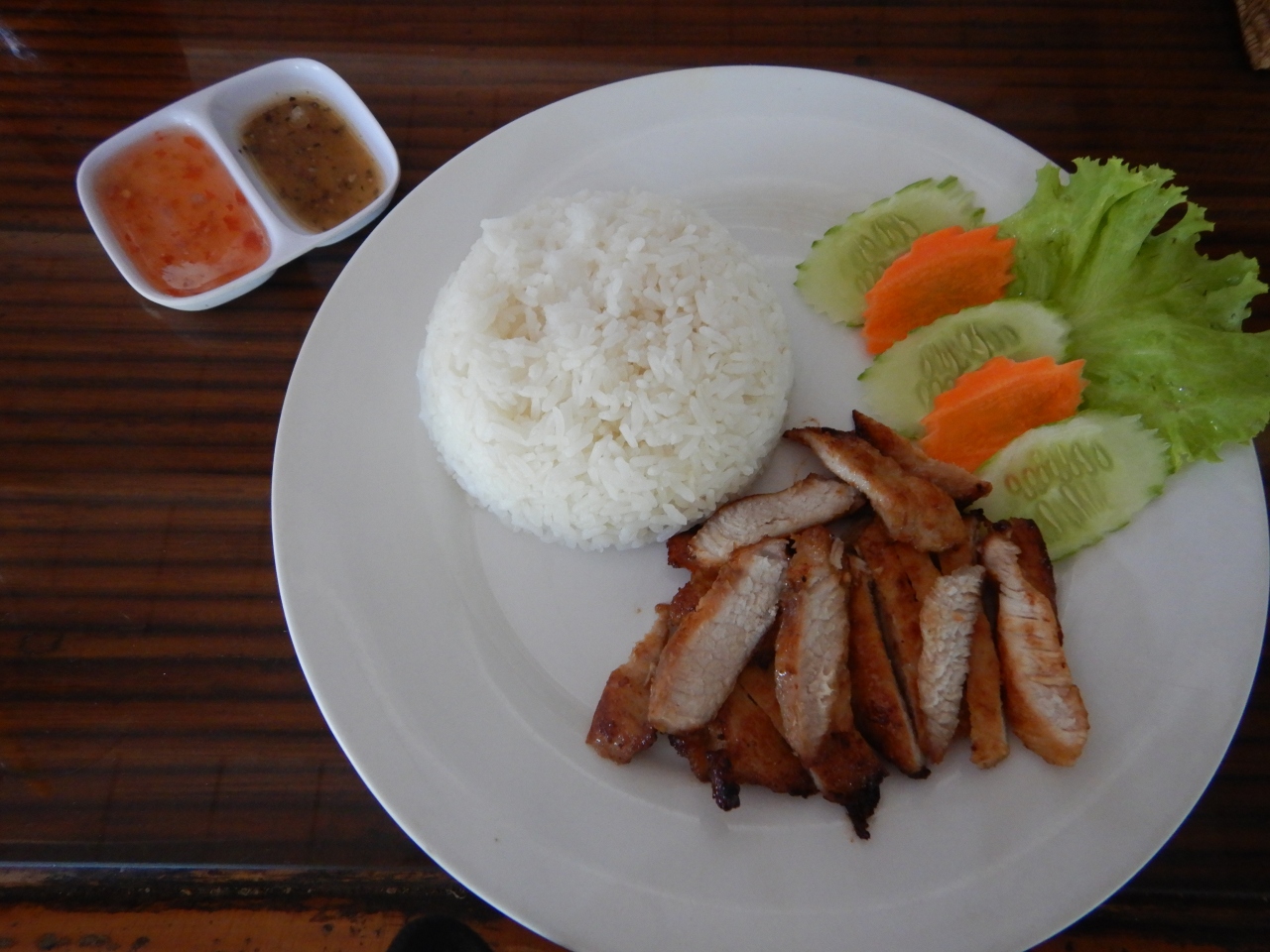 12月1日から経営者が変わったが、看板を変更する時間がなかったのか、まだそのままだった。スタッフも変わっていなかった。ポークライス2$を食べてみた。焼いた豚肉と少々の野菜。肉は固いが、2$なら十分な味だった。