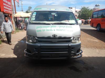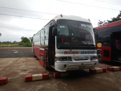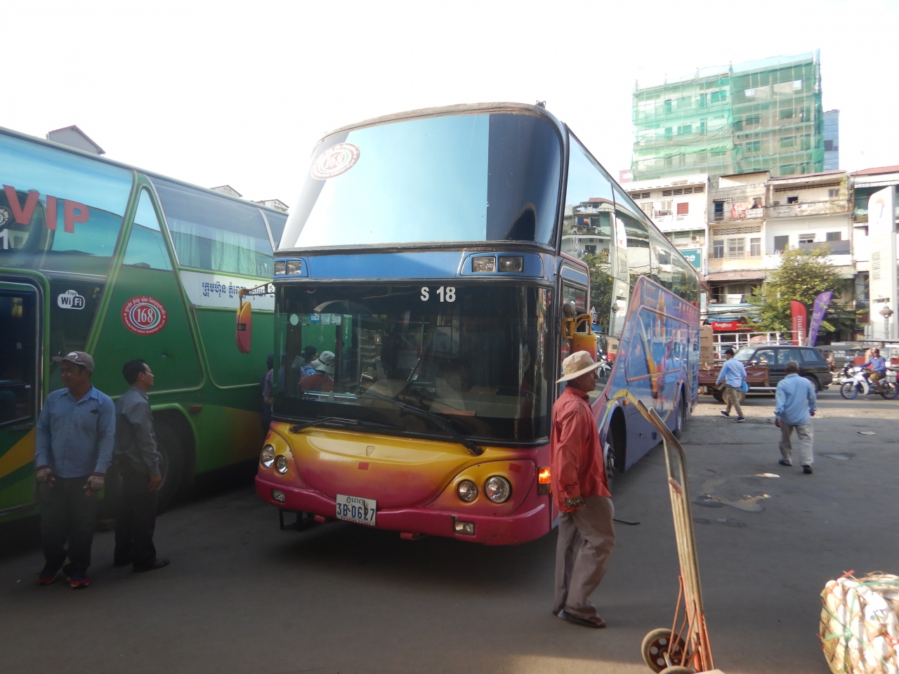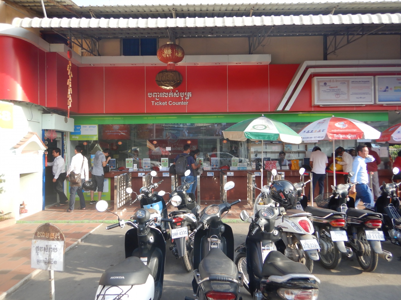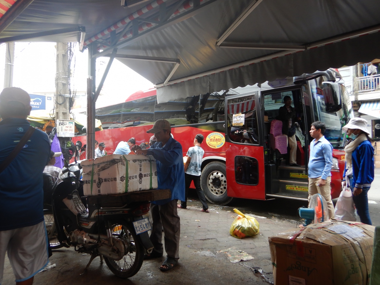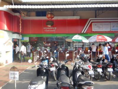 シェムリアップのゲストハウスでバスチケットを手配してもらった。ピックアップ付きで8$だった。この会社のバスターミナルはセントラルマーケットに近くで、自分がよく泊まるゲストハウスまで歩いて行けるから今回も使ってみた。