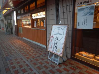 「釜揚げうどん半額の日」の看板が外に掲げられていた